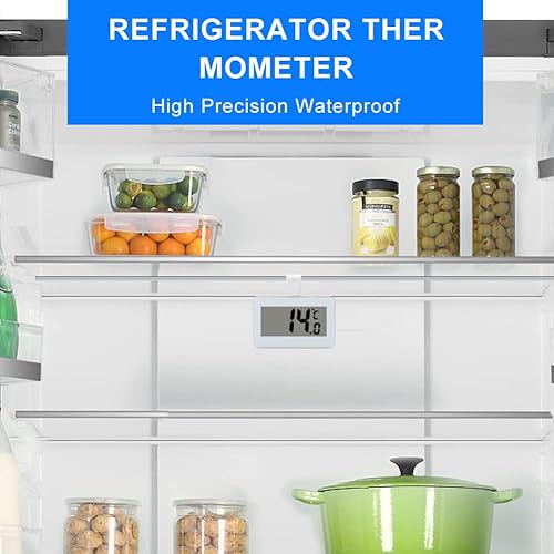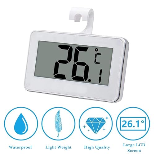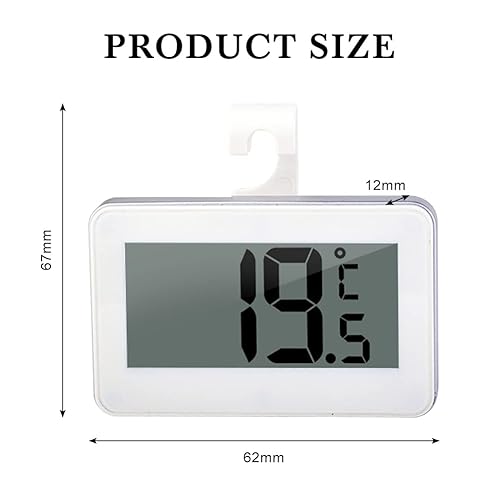 Thermomètre Congélateur,Mini Digital LCD Thermomètre,Mini Thermomètre Frigo,Thermomètre Réfrigérateur,Écran LCD Facile à Lire,avec Crochet,Blanc