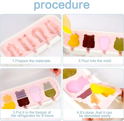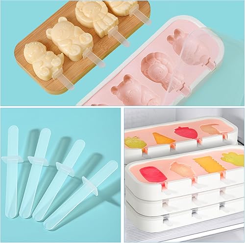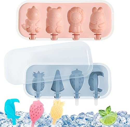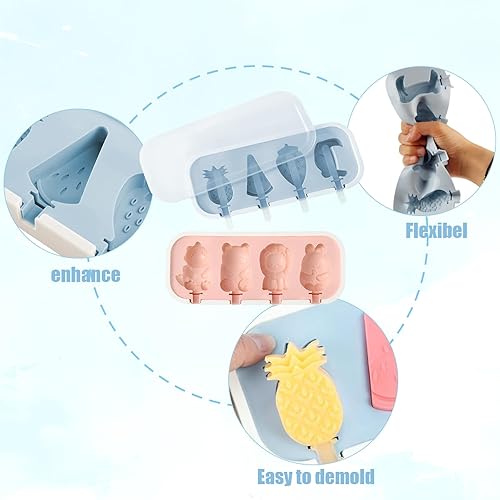 DBALL 2 Pièces Moule A Glace Moule Glace Réutilisable Avec Couvercle Et Bâton Moule Glace Silicone Batonnet Pour Bricolage Et Interaction Parent-Enfant (Rose Et Jaune)