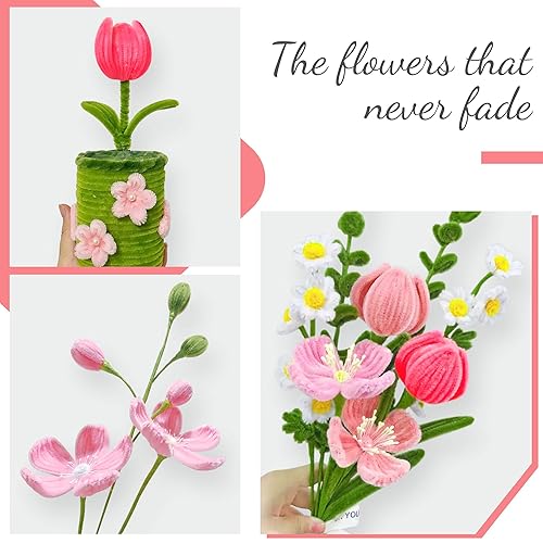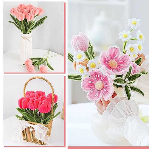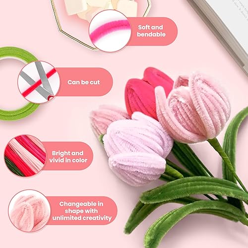 Gimars 300PCS Fil Chenille Multicolores, Kit de Cure Pipe pour Bouquet de Fleurs Tulipes, Fils Chenille avec Ruban et Papier de l'Emballage pour Loisirs Créatifs, Décorations, Artisanats Débutants