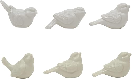 Creative Co-op Lot de 6 Oiseaux en céramique, Blanc