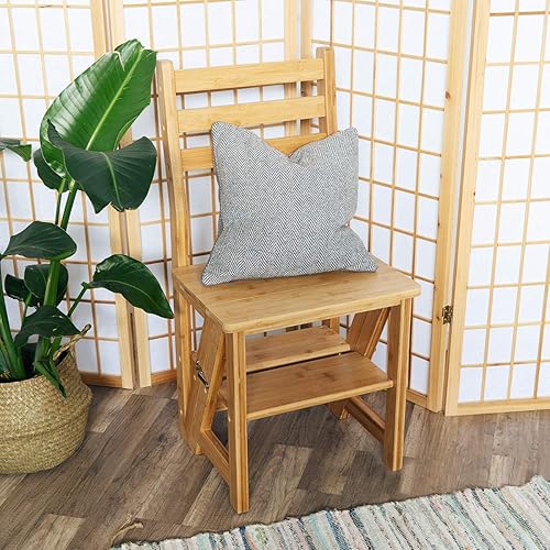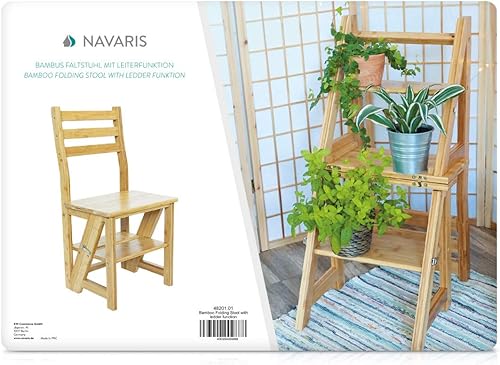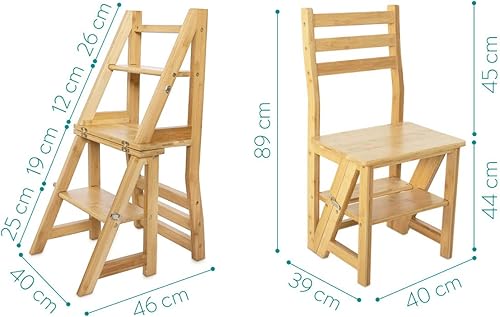 Navaris Escabeau Chaise en Bois - Chaise Convertible en Escalier 3 Marches - Meuble Pliant Multifonction Décoration Maison Salon Bibliothèque