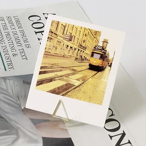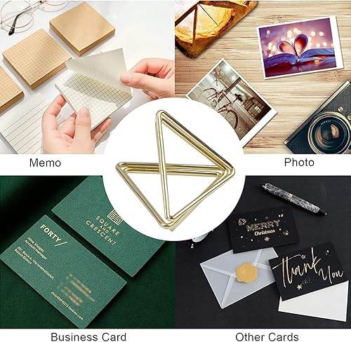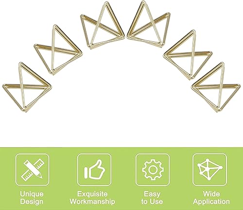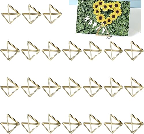 UFURMATE Clips de Support pour Photos, 24 pcs Triangle Forme Clip Mémo Or Table Titulaires de la Carte Place Cartes Clips Métal Porte-Numéro Table pour Fête d'anniversaire Mariage (Triangle D'Or)