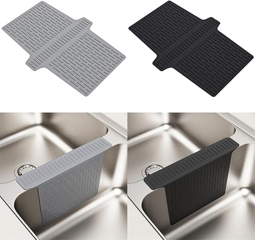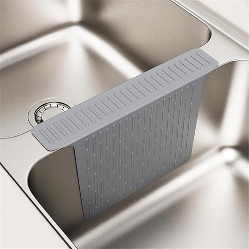 Tapis de selle d'évier de cuisine en silicone résistant pour un usage quotidien et élimination (gris)