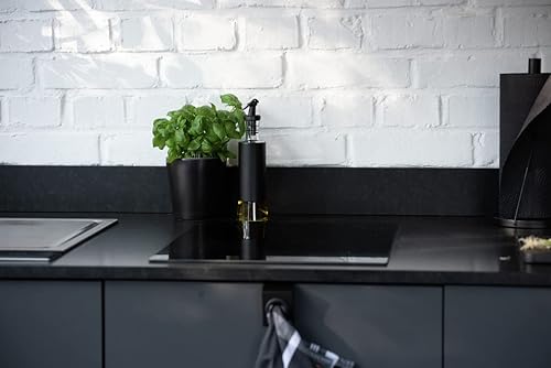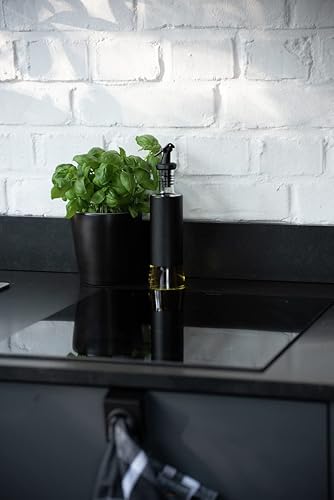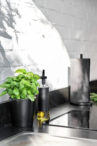 WENKO Distributeur huile & vinaigre Boga, 300 ml, bec avec fermeture à 1 pression, dosage précis, bouteille en verre, habillage acier inoxydable & bouchon plastique, Ø 6 x 25 cm, transparent/noir
