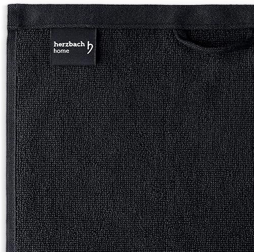 herzbach home Collection Deep Black - Serviette de bain extra large 100 x 150 cm - 100 % coton - Douce et absorbante - Couleur : noir