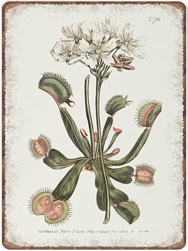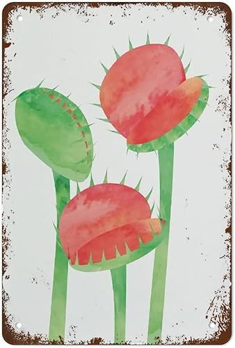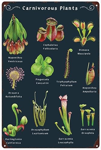 Plaque en métal vintage Plantes carnivores Affiche rétro Plantes mangeuses d'insectes Botanique Art mural Décoration Cadeau pour amoureux des plantes carnivores Maison Portail Jardin Bar 20 x 30 cm