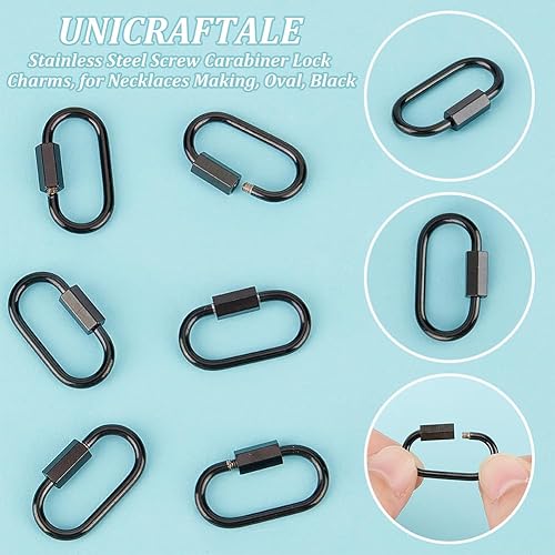 UNICRAFTALE 6pcs Mousqueton à Vis Ovale Noir Fermoir à Vis Fermoir à Clé Acier Inoxydable Fermoir à Mousqueton Crochet à Maillon Rapide pour Fabrication de Bijoux Sac à Main Accessoire de Bricolage