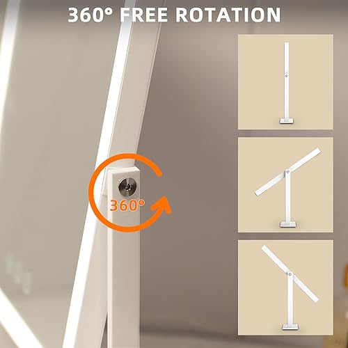 FENCHILIN Miroir de maquillage avec éclairage Hollywood - 3 couleurs - Lumière à intensité variable - Avec éclairage - Contrôle tactile intelligent - Grossissement 10x - Rotation à 360° - Blanc