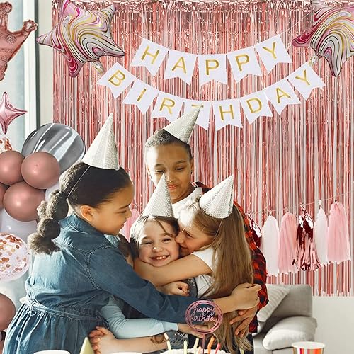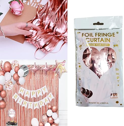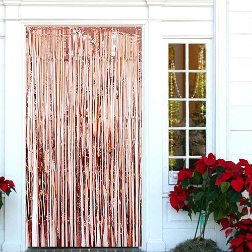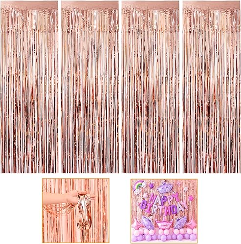 4 Pièces Rideaux Guirlandes, Rideau Chatoyant, Frange de Fond 1 x 2m, pour Mariage, Anniversaire, Fête d'halloween, Fête de Noël, Décoration Murale, Or Rose