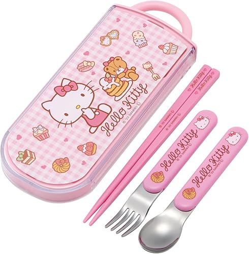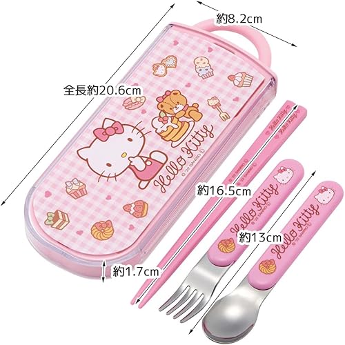 Skater TACC2AG-A Trio Set, Chopsticks, Spoon, Fork, Hello Kitty, Sweets, Sanrio, Kids, antibactérien, Made in Japan