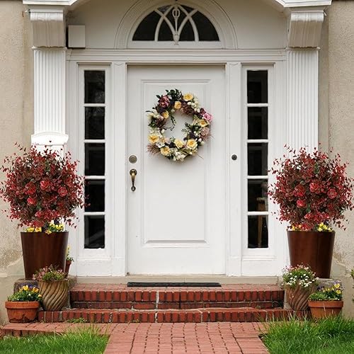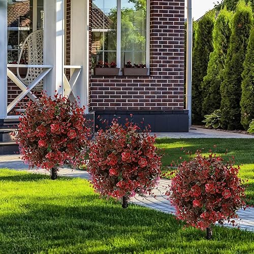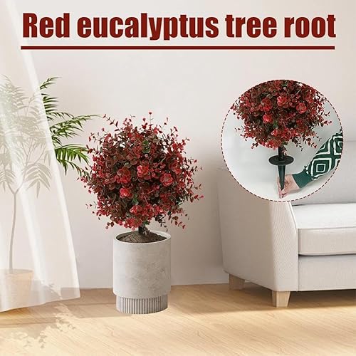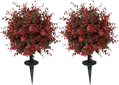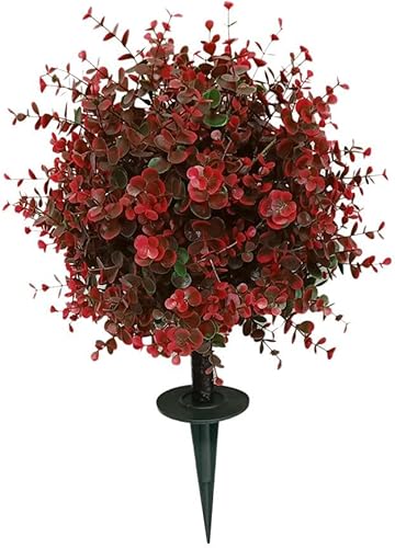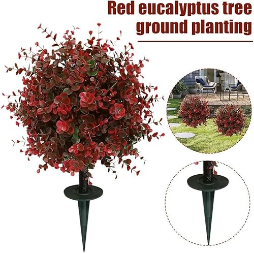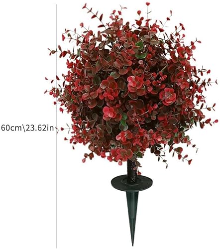 LZYWOD Buisson topiaire artificiel en buis d'eucalyptus rouge pour extérieur avec sol artificiel de 60 cm, arbustes UV à pointes résistantes aux UV, verdure résistante