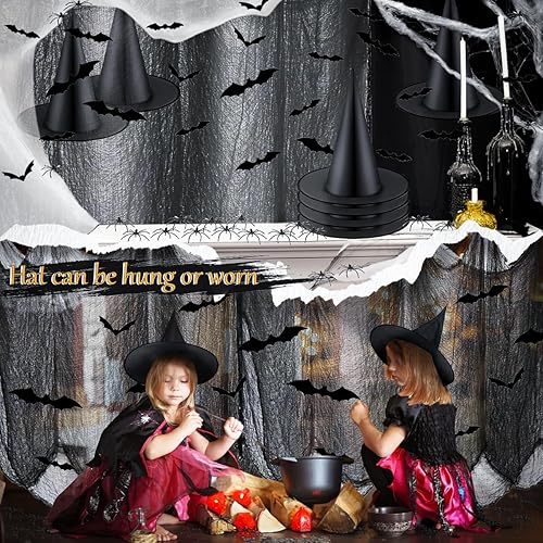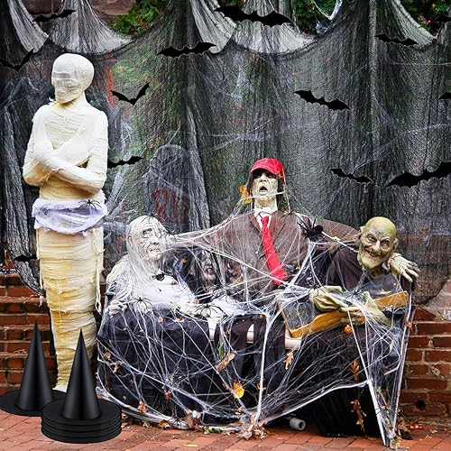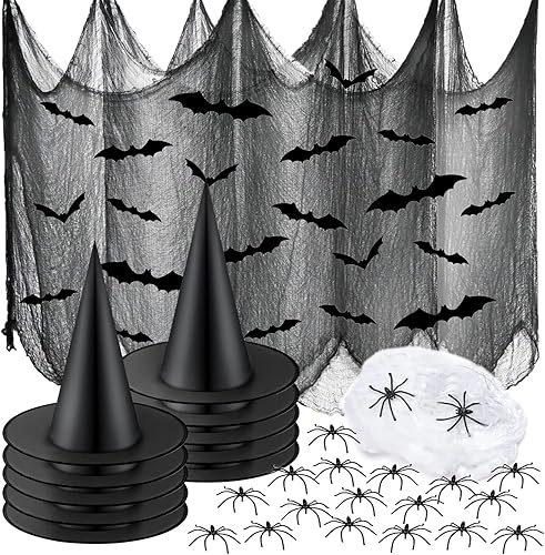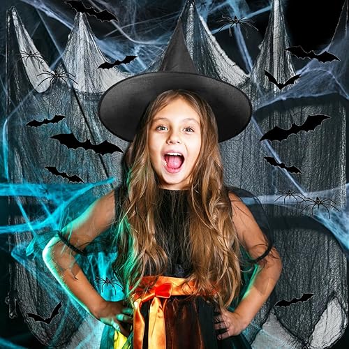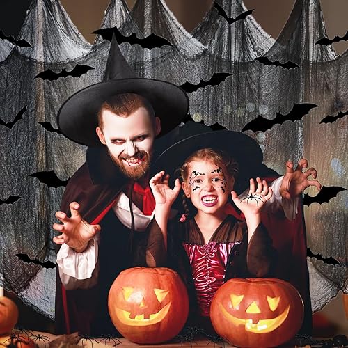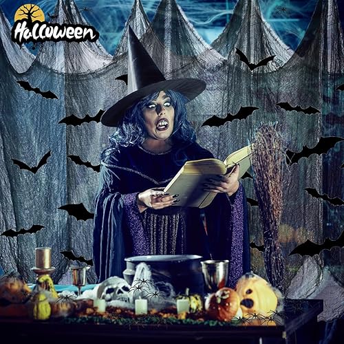 Halloween gaze de coton,1*2M rideau porte exterieur, halloween decoration Gaze Spooky, Rideau d'horreur pour Salle de Fête en Plein air Maison Hantée Portes d'Entrée à l'Extérieur(4 Noirs + 2 Blancs)