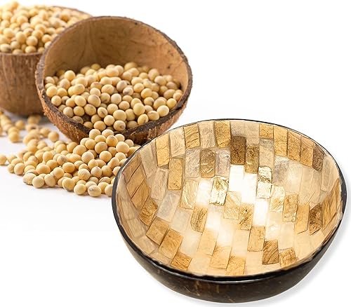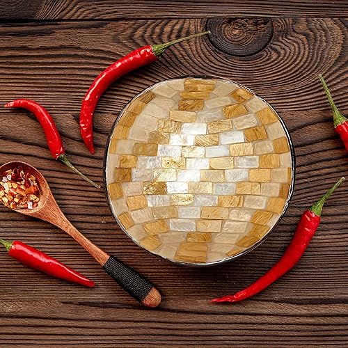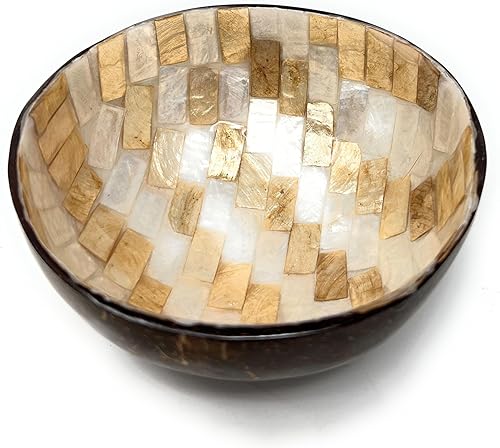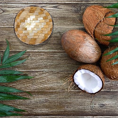 Trintura Bol décoratif en noix de coco nacré - Bol décoratif pour clés - Bol à bijoux moderne - Bol à collation en bois