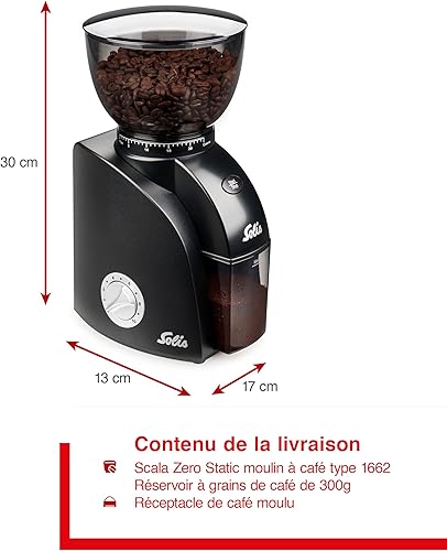 Solis Scala Zero Static 1662 Moulin à Café - Grinder Electrique - 24 Réglages de Mouture - Protection Contre le Café Statique - Noir