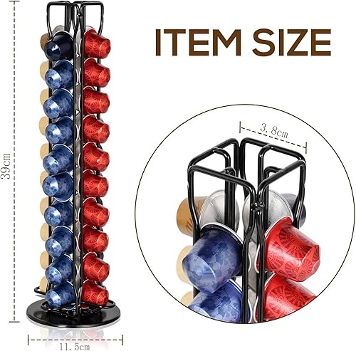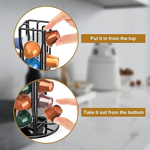 Porte Rangement pour Nespresso Capsules de Café, Supports pour 40 Capsules de Café Noir, 360 Degrés Rotable Range Coffee Capsule Stands, Distributeur de Capsules, Support de Rangement Dosette