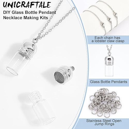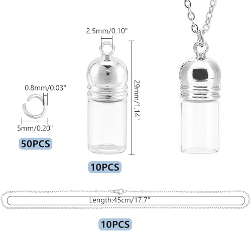 UNICRAFTALE 10ensemble Kit de Collier de Fiole en Verre Pendentif de Fiole en Verre Bouteilles de Souhaits Sablier Souvenir Commémoratif Support de Cendre de Crémation Conteneur de Mémoire pour Bijoux