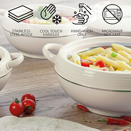 SQ Professional Lot de 3 cocottes isothermes avec couvercles - 1,2, 1,6 et 2,5 litres - Crème