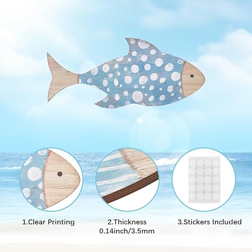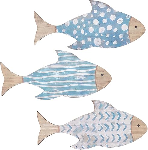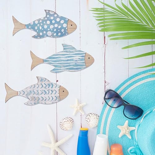 GORGECRAFT 3 Styles de Décoration Murale en Bois en Forme de Poisson Sculpture Murale en Bois Style Nautique Plage Poissons Océan Lac Maison Art Suspendues pour Salle de Bain Maison Extérieur Fête