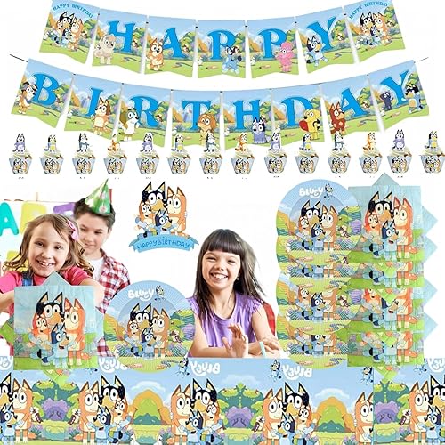 67 Pièces Anniversaire Décoration Décoration Kit Bannière Anniversaire Assiette en Papier,Serviettes en Papier,Cupcake Topper,Tableau
