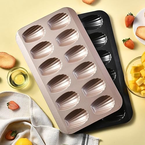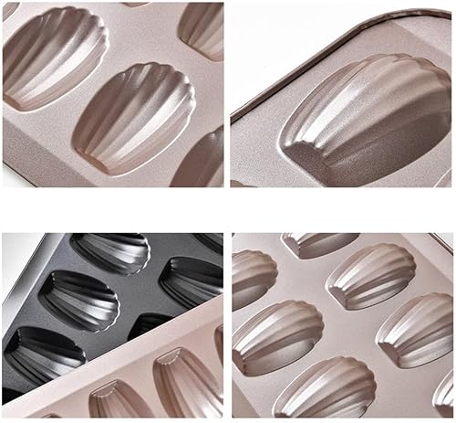Moule à madeleines antiadhésif, 12 cavités en acier inoxydable pour la cuisson au four, moule à madeleine résistant à la déformation (doré), PK005M7QS57373EI3723XM8AXE0