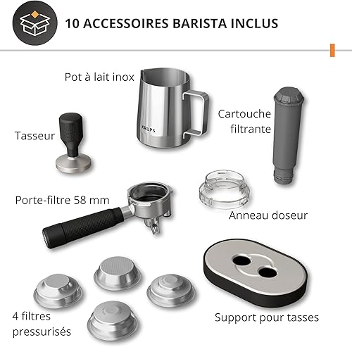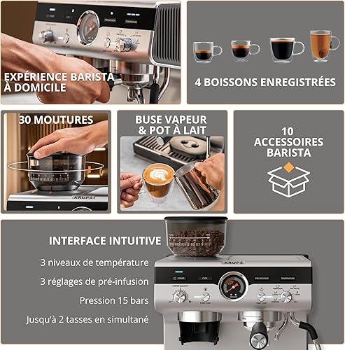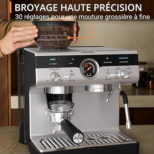 KRUPS Precision, Machine espresso manuelle avec broyeur, Barista, Espresso parfait, Interface intuitive avec accès direct aux réglages, XP801T10, Aluminum
