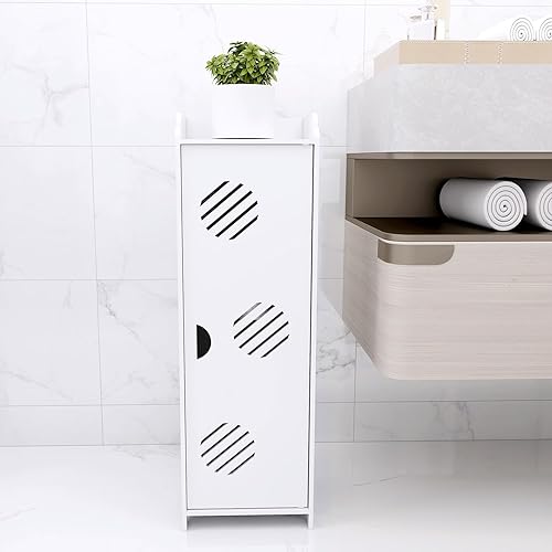 LANTUS Petit Meuble de Rangement pour Toilettes, Support pour Papiers Toilettes, Colonne, Armoire de Salle de Bain, Placard, Étagère Réglable,24 * 20 * 75cm -Blanc
