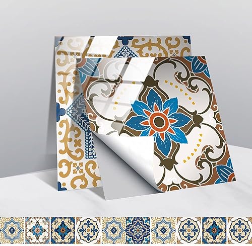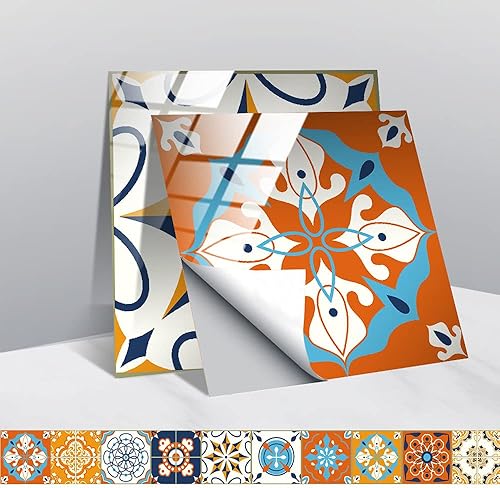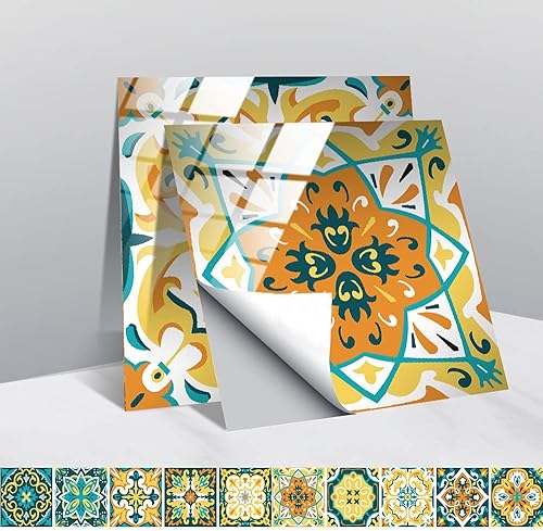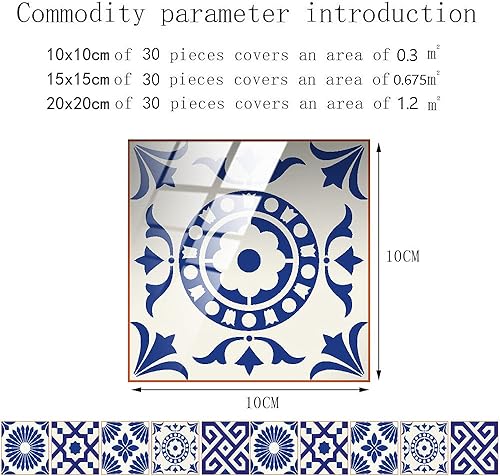 30 Pièces Stickers Muraux Autocollants pour Carrelage en Céramique et Marbre, Salle de Bains et Cuisine Sticker, Hiser Bohême Monaco Mosaïque Imperméables Décoration (Mosaïque,15x15cm)