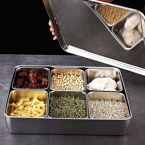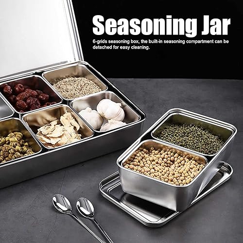 Haofy 6 grilles boîte d'assaisonnement en acier inoxydable conteneurs de stockage de condiments bocal à épices ensemble de conteneurs de cuisine avec cuillères ustensiles de cuisine