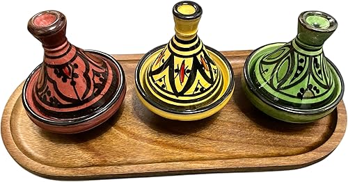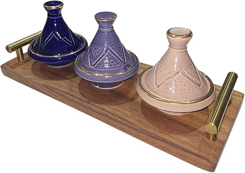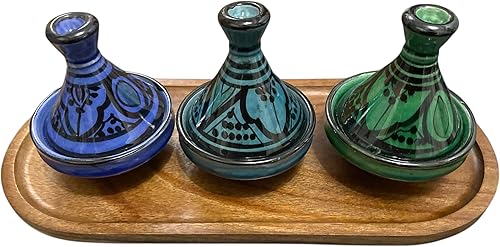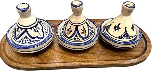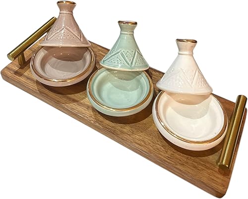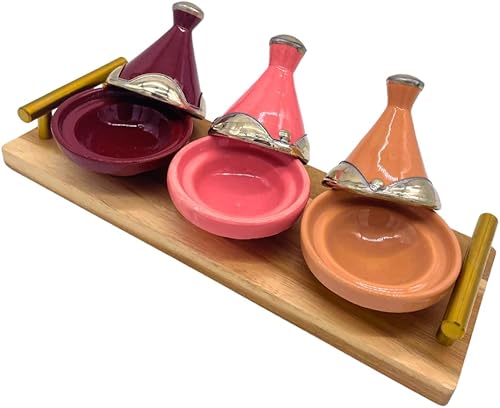 Lot de 3 Mini Tajines avec Plateau – Artisanat Marocain pour Condiments et Sauces (MODELE 05)
