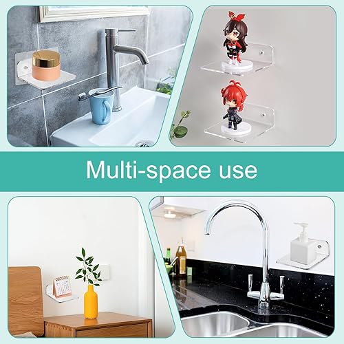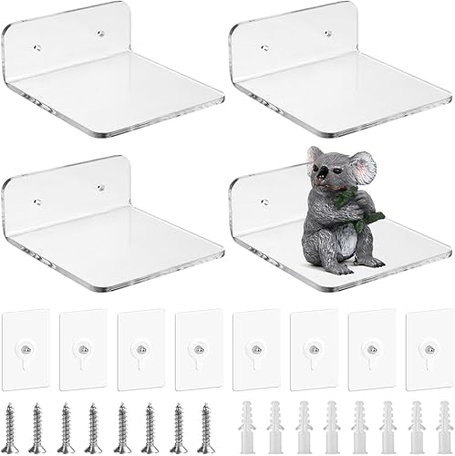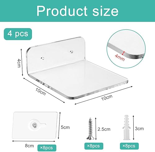 SLTAXAR 4 PCS Petite Étagère Murale Acrylique Adhésive Étagère Acrylique Transparente Étagère Acrylique sans Perçage Ransparente Étagère Flottante Murale Acrylique pour Salon Cuisine 10 * 10 * 4cm