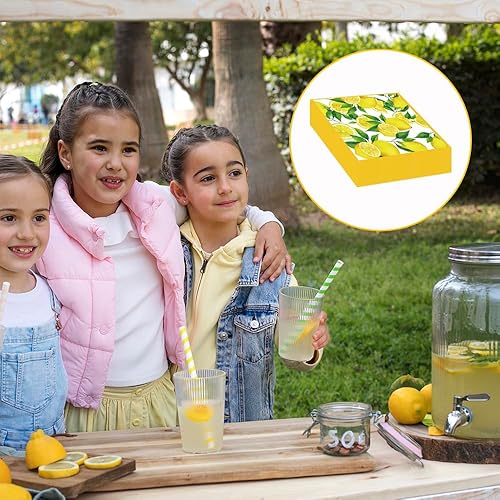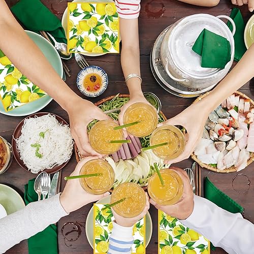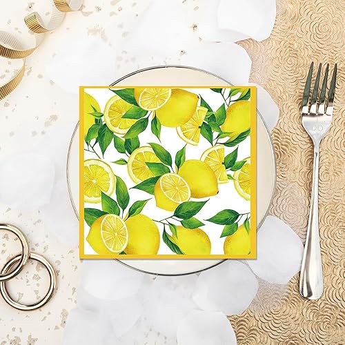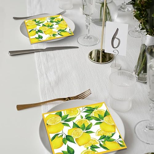 Glamifyr Lot de 40 Serviettes de Table Motif Citron,Serviettes de Table en Forme de Citrons Naturels,Citrons Décoration de Table Idéale Fête D'Anniversaire,Jardin Été Serviette Papier Jaune 33 * 33cm