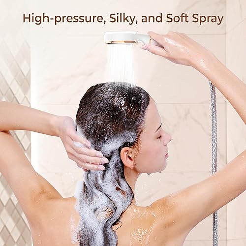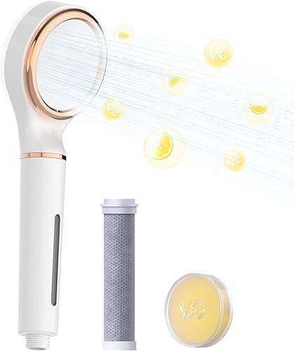 Waterdrop SF02-SL Pomme de Douche Filtrée Avec Portable, Filtre de Douche à La Vitamine C, Soin des Cheveux et de La Peau, Eau Adoucissante Pour Réduire la Perte de CCheveux, Réduire le Chlore, Citron
