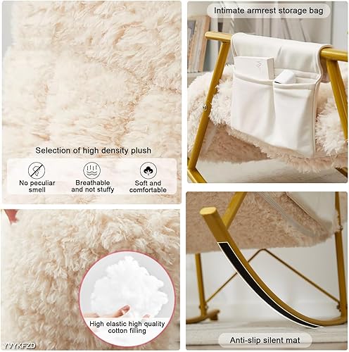 YVYKFZD Fauteuil à Bascule pour Chambre d'enfant, Chaise à Bascule Confortable à Dossier Haut, Fauteuil Allaitement de Loisirs rembourrée avec Appui-tête réglable, capacité de Charge 200 kg (Color