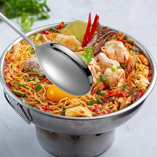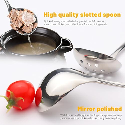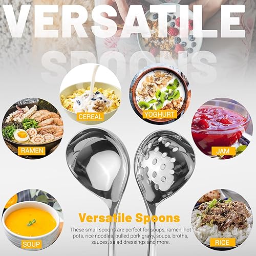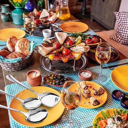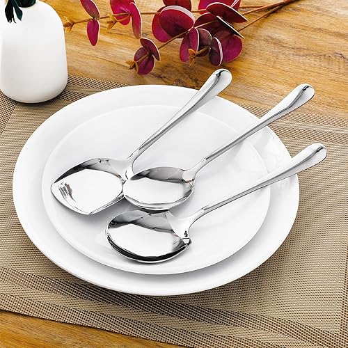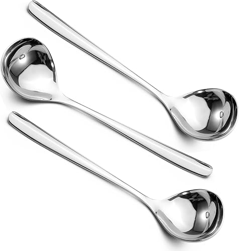 TIESOME Lot de 3 cuillères de service en acier inoxydable - Couverts de présentation - Grande cuillère de service - Cuillère longue - Couverts à salade en acier inoxydable - Cuillère à dessert