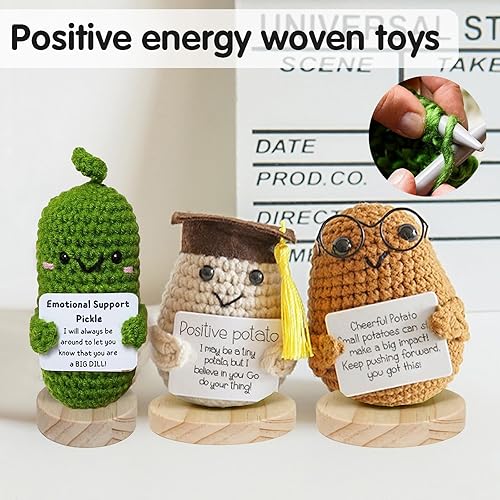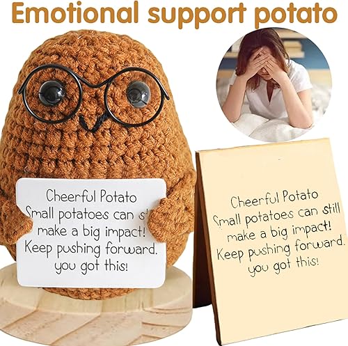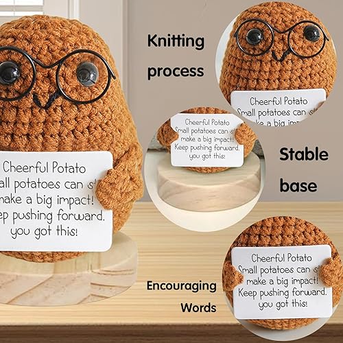 LUKIUP Mini Positive Potato, 8,5cm Pomme de Terre Positive Drôle, Poupée à Potate en Iaine Tricotée Créative, Hug de Poche Poupée Tricoté avec Cartes de Message Encourageantes pour Amis Collègues