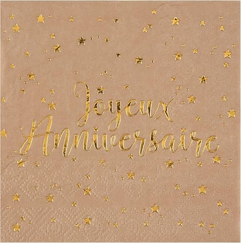 Serviette cocktail anniversaire Kraft et dorée or métallisée (x20) REF/5663