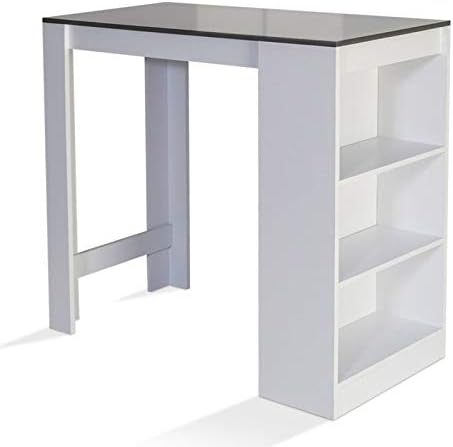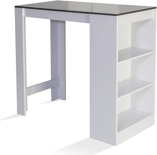 IDMarket - Table de Bar Barth 2 à 4 Personnes Bois Blanc Plateau Gris