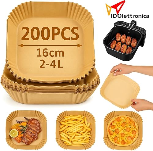 Papier four carré 16 x 16 x 4,5 cm – 200 pièces, antiadhésif, résistant à la chaleur, idéal pour four, Air Fryer et cuisson au four