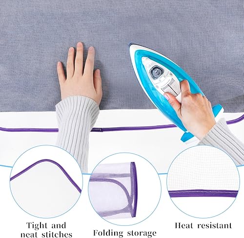 JIYIN Lot de 2 tissus de protection en maille pour fer à repasser, bleu et violet, économise les brûlures, coussin isolant en maille de repassage pour repassage facile et couture