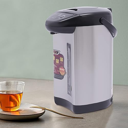 Distributeur d'eau chaude en acier inoxydable 4 l - Pot isotherme électrique à double paroi - Fonction maintien au chaud - Bouilloire - Thermos pour la maison, l'école, le bureau (noir)