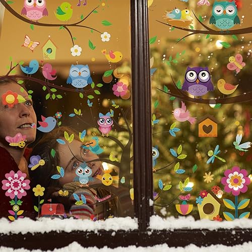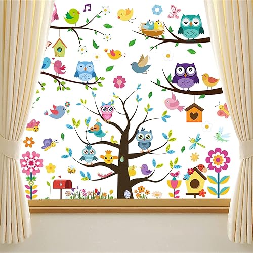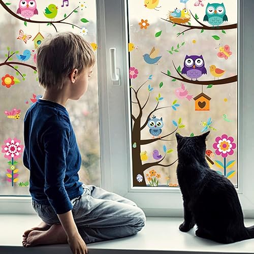 9 feuilles de stickers muraux électrostatiques pour fenêtre de dessin animé, autocollants muraux plats imperméables, décalcomanies auto-adhésives en PVC, décoration de fenêtre double face bricolage
