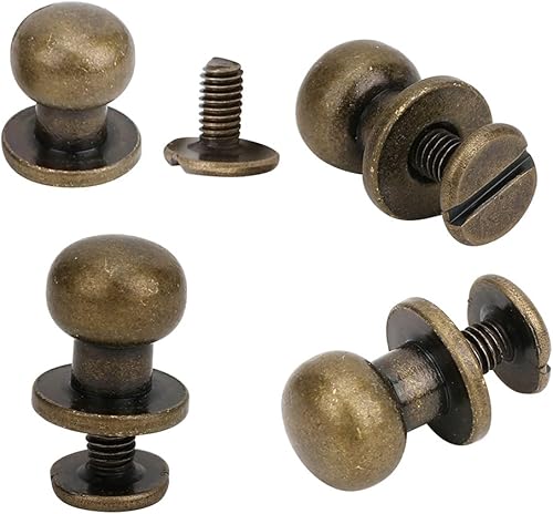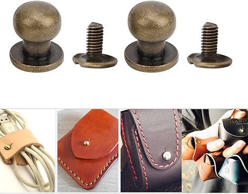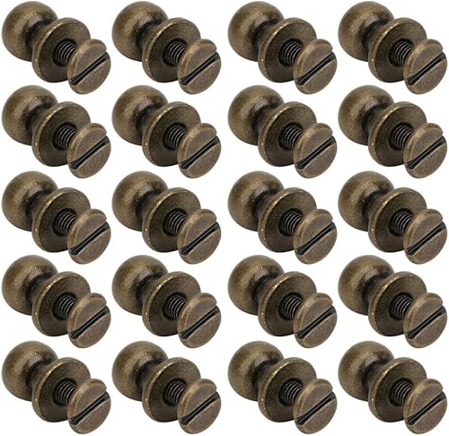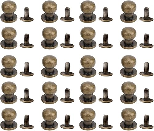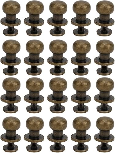 Bouton de tête rond 20pcs, vis ronde à la tête Chicago Viss de rivet en cuir étalon étalon et bouton de pointe rivets pour le cuir (Silt de la tête du moine 9 * 8 mm)