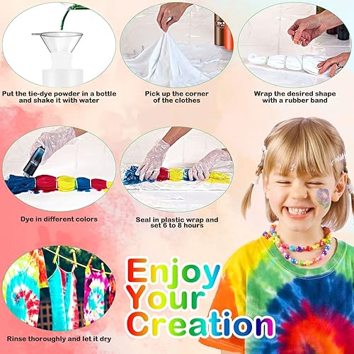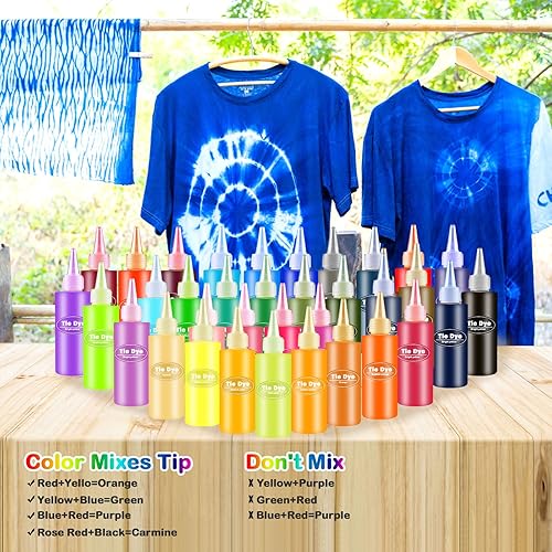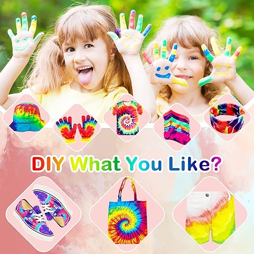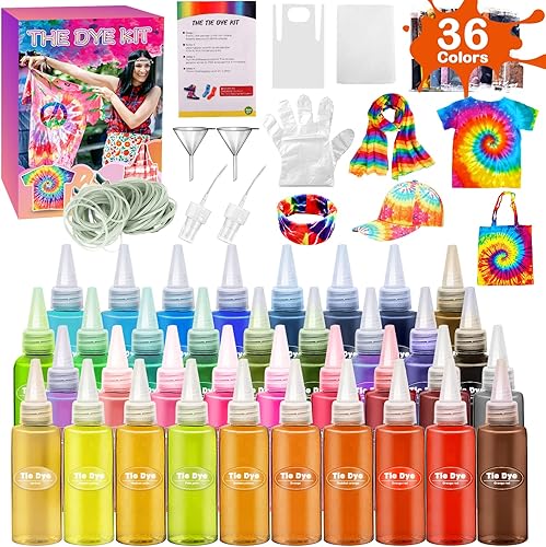 VIPNAJI 36 Couleurs Tie Dye Kit, Kit Tie-Dye Peinture Textile Teinture Permanente Art & Crafts, Teinture Tissu pour Enfants Adultes, Non Toxique teinture vetement, avec nappe gants tablier etc(250pc)