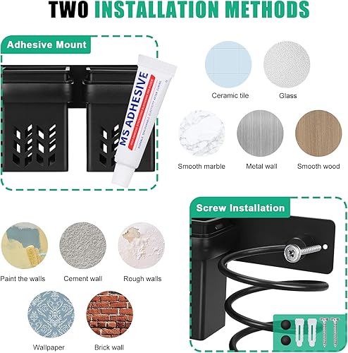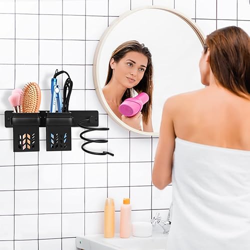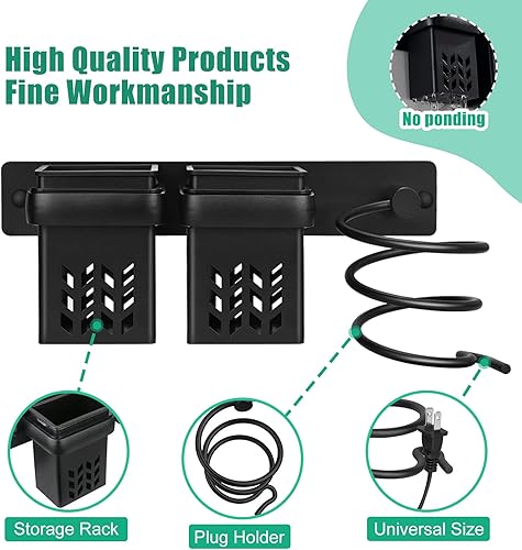 JAMITE Porte Sèche Cheveux, Support de Lisseur en Aluminium avec Rangement ABS et Range-Câbles,Support pour Bain Multifonctionnel pour Ranger Le sèche-Cheveux,Le lisseur,Plus