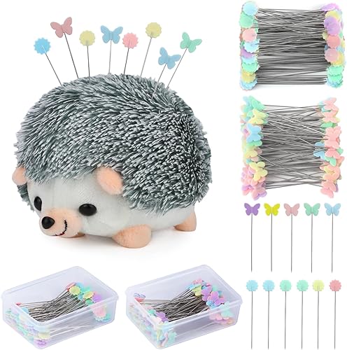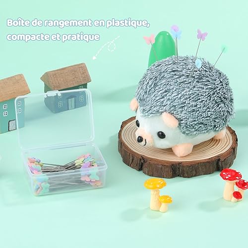 200 Pièces Épingles à Couture, Épingles à Tête De Fleur Plate, Accessoires de Couture avec Hérisson en Forme de Coussin, Décoratives Quilting Pins pour Projets De Couture