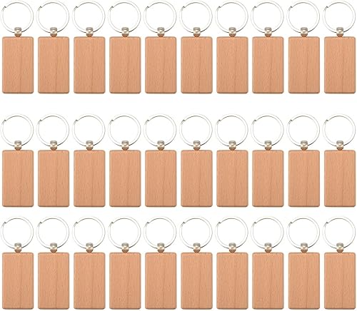 RUANI Lot de 30 clés rectangulaires en bois vierges pour bricolage - Cadeau à graver, bois, 55*31*7 mm