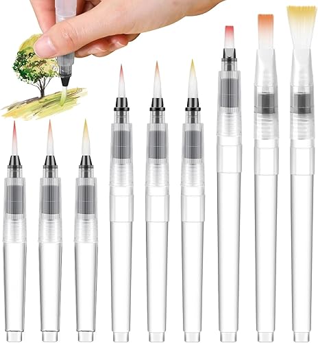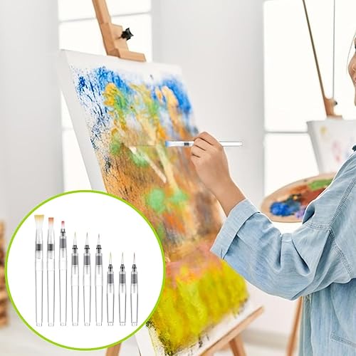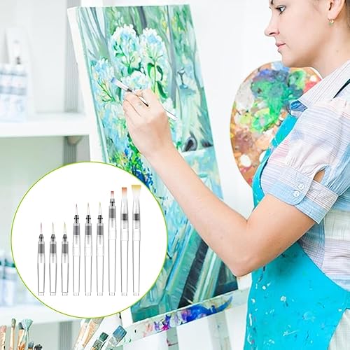 RODISHOMM Lot de 9 pinceaux à eau avec réservoir d'eau rechargeable, pinceaux aquarelle pour peinture et art