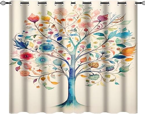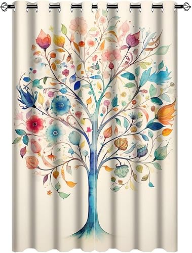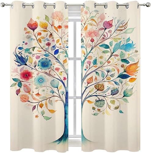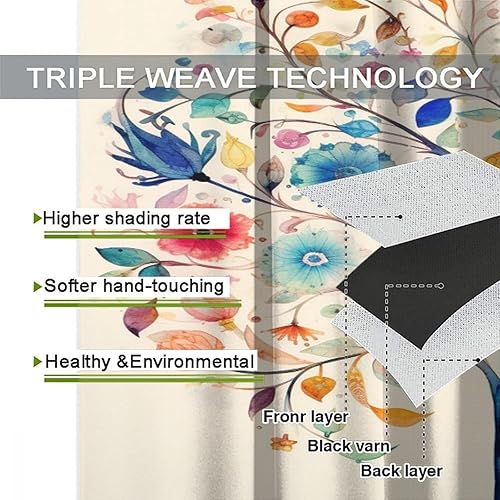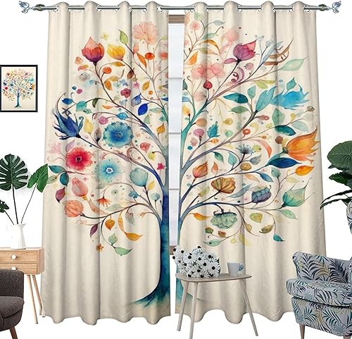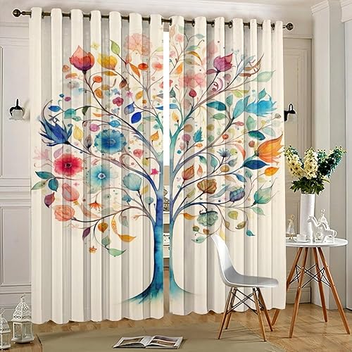 AEMYSKA Rideaux occultants à isolation thermique avec œillets pour chambre à coucher, motif floral, nature, botanique, abstrait, 140 x 160 cm