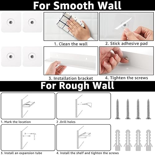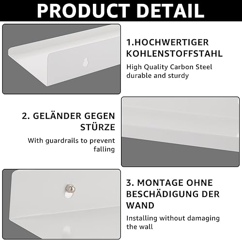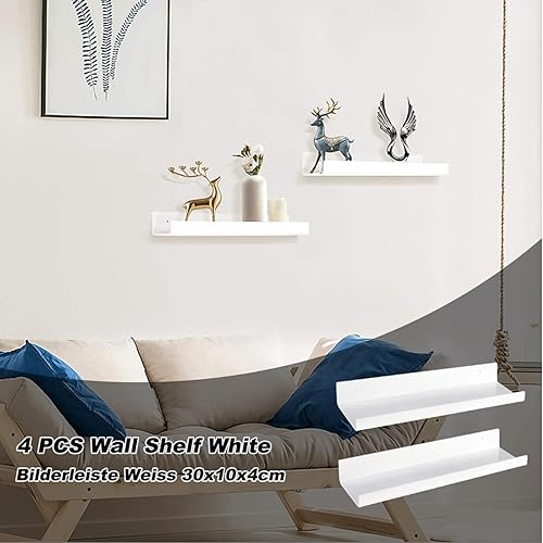 Oungy Lot de 4 Etagere Murale sans Percage 30x10x4cm Etagere Murale Blanche en Métal Etagere sans Percage pour Cuisine, Salle De Bain, Bureau, Salon