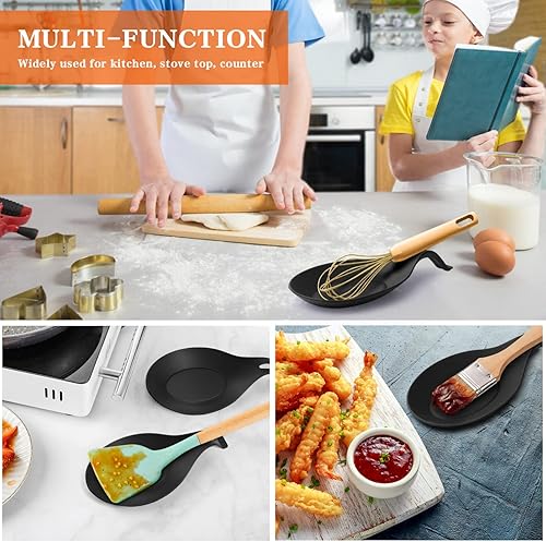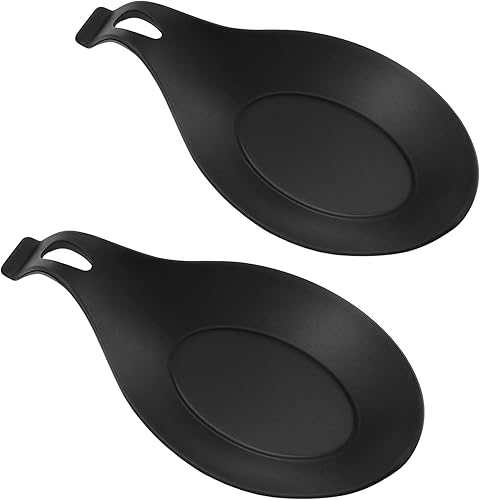 Hemoton 2pcs cuillère en Silicone Repose ustensile de Cuisine Support résistance à la Chaleur cuillère Rack cuillère Pad pour Restaurant à la Maison (Noir)